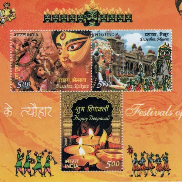 Indian Miniature Sheet – Indian Festivals- Durga Puja, Dussehra, & Diwali Sheet (7th Oct 2008)