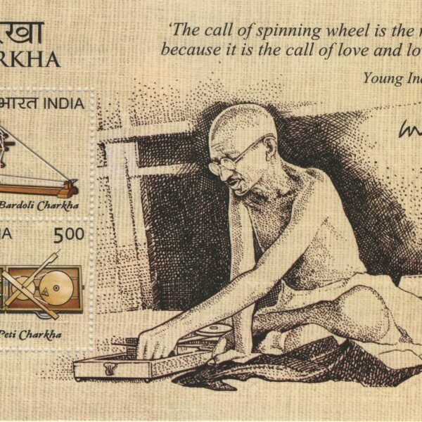 Indian Miniature Stamp – Charkha and Mahatma Gandhi ( 13th Oct 2015)