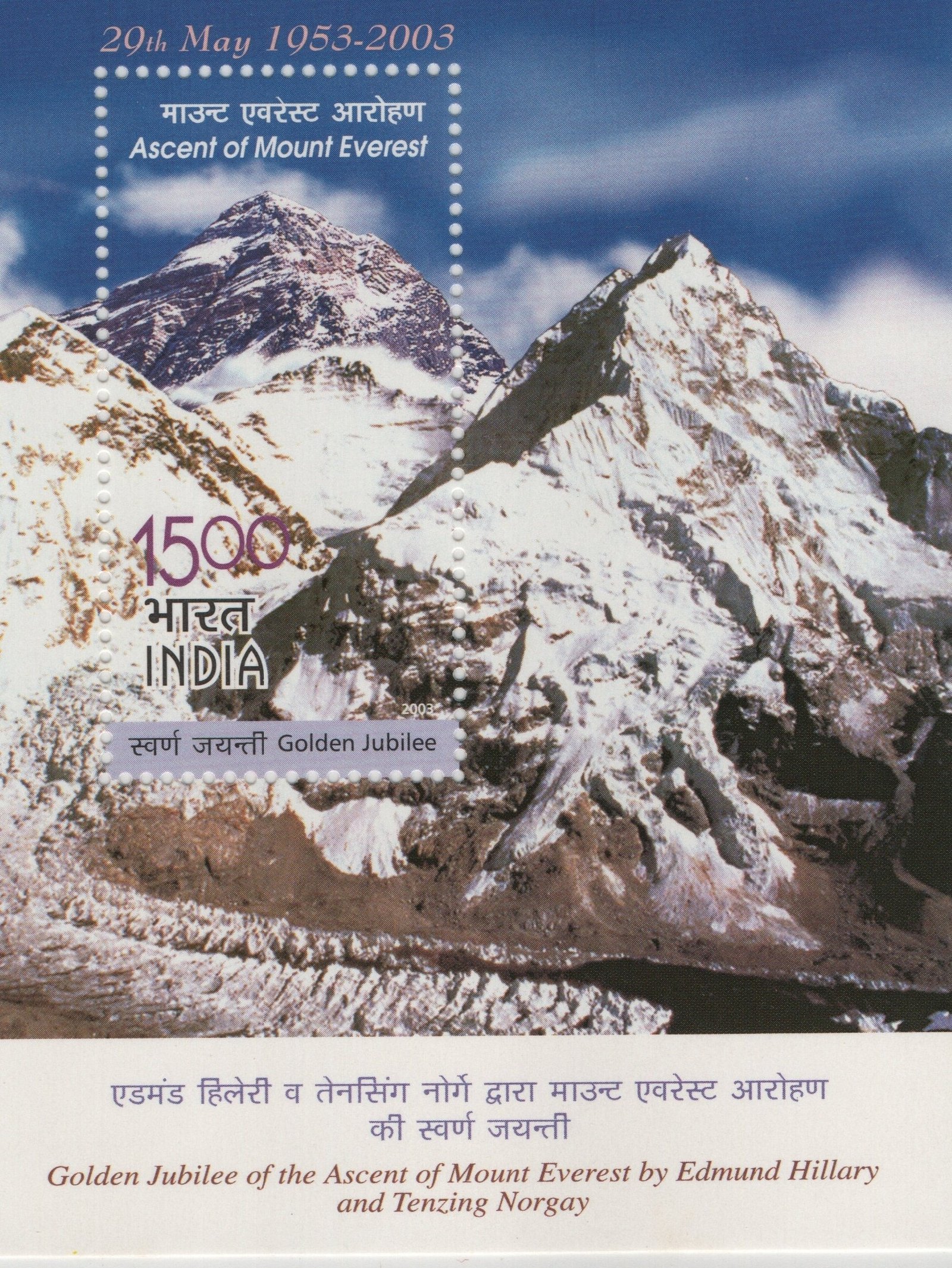 Indian Miniature Sheet – Golden Jubilee of Mt. Everest Ascent Stamp ( 29th May 2003)