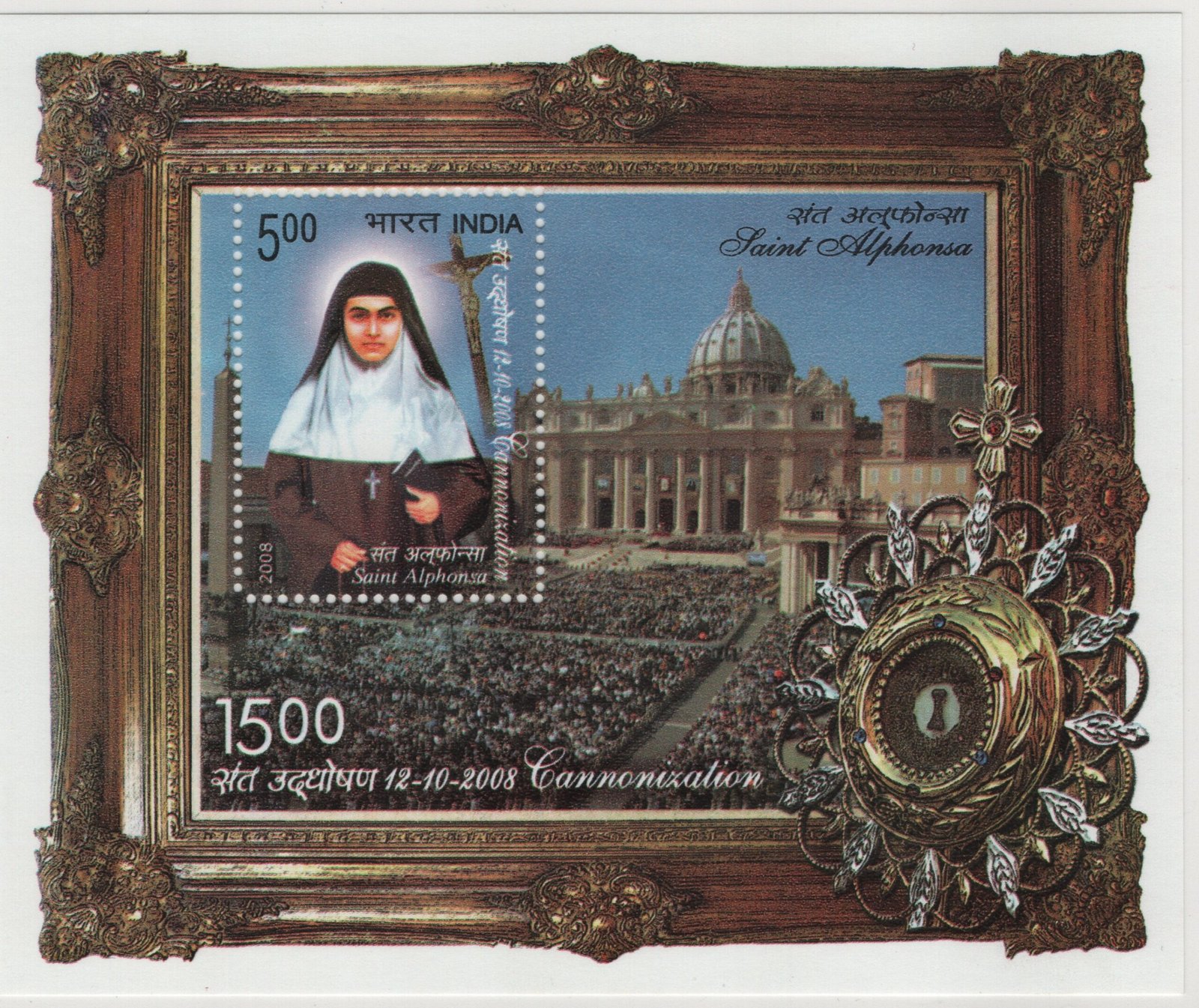 Indian Miniature Sheet – Saint Alphonsa Canonization Stamp ( 16th Nov 2008)