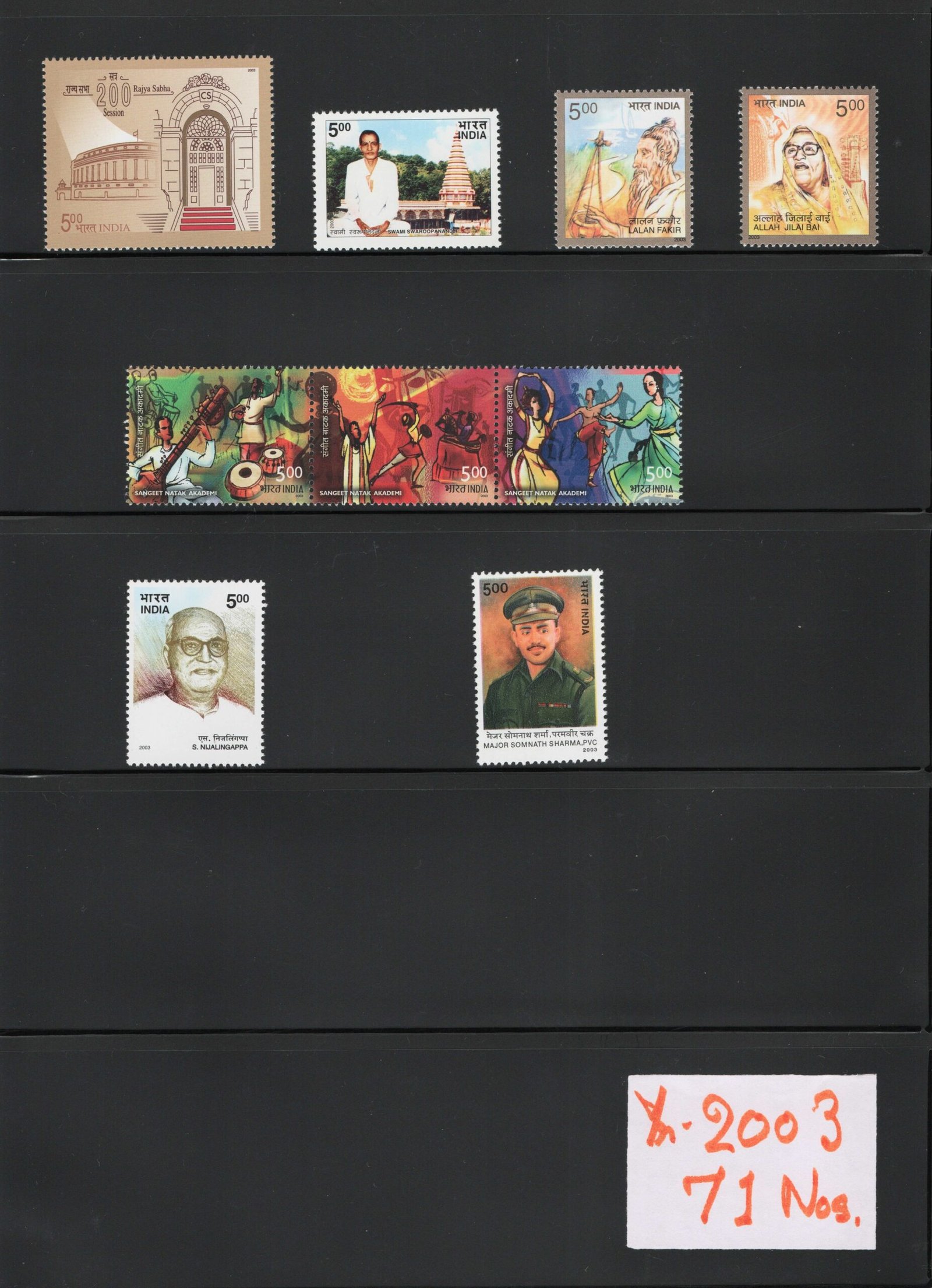 Indian MNH Commemorative Year Pack Stamps 2003 ( 71 Stamps)