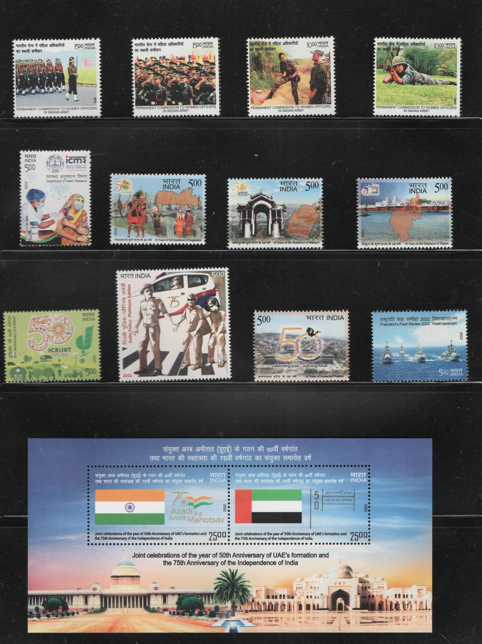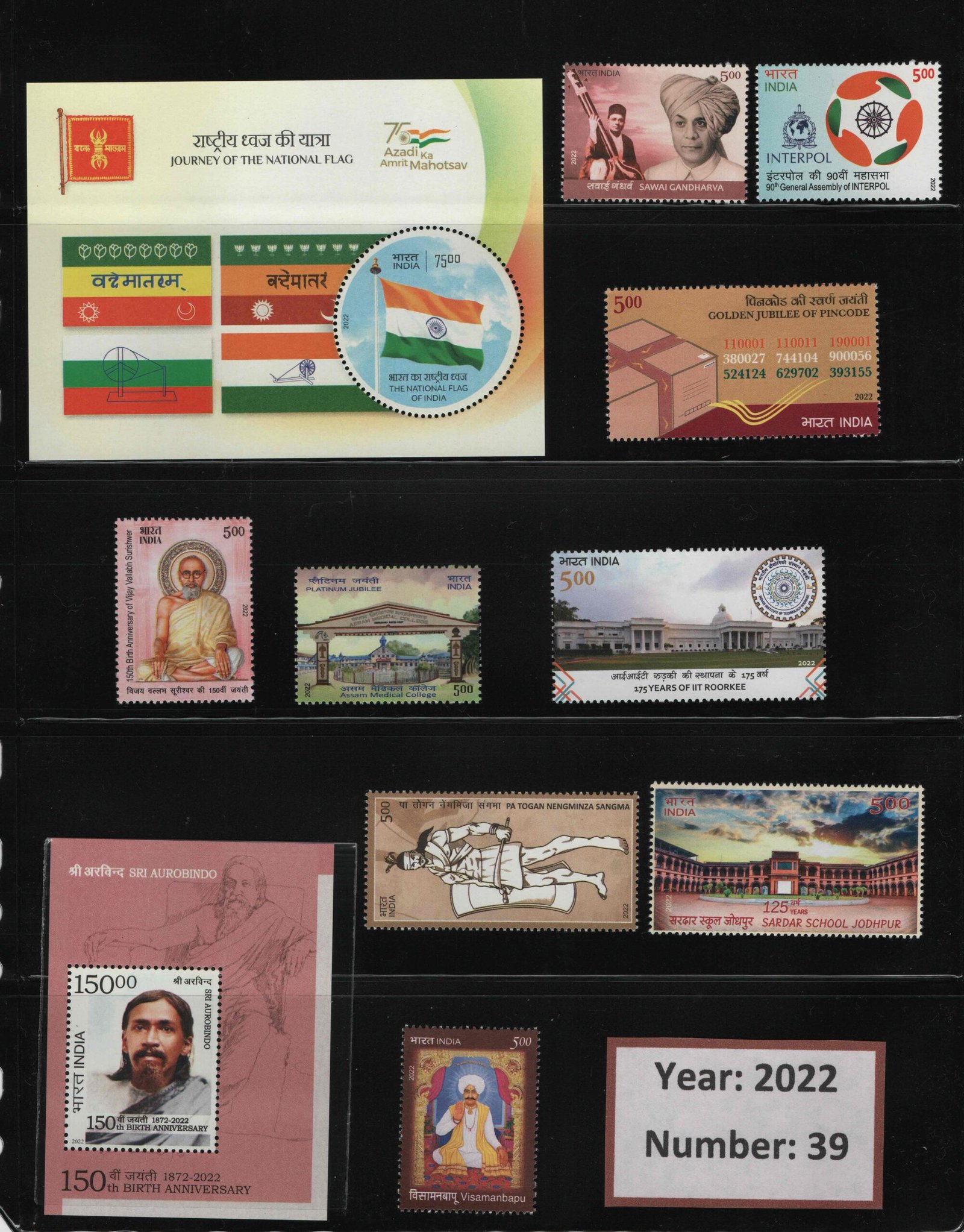 Embark on a captivating philatelic journey with this exquisite collection of 39 Indian Commemorative Postage Stamps from the year 2022. This carefully curated set offers a vivid snapshot of India’s rich cultural heritage, significant national milestones, and revered personalities, making it an indispensable addition for both seasoned philatelists and budding collectors. Each stamp is a miniature work of art, reflecting a moment in time and celebrating the diverse facets of the nation.