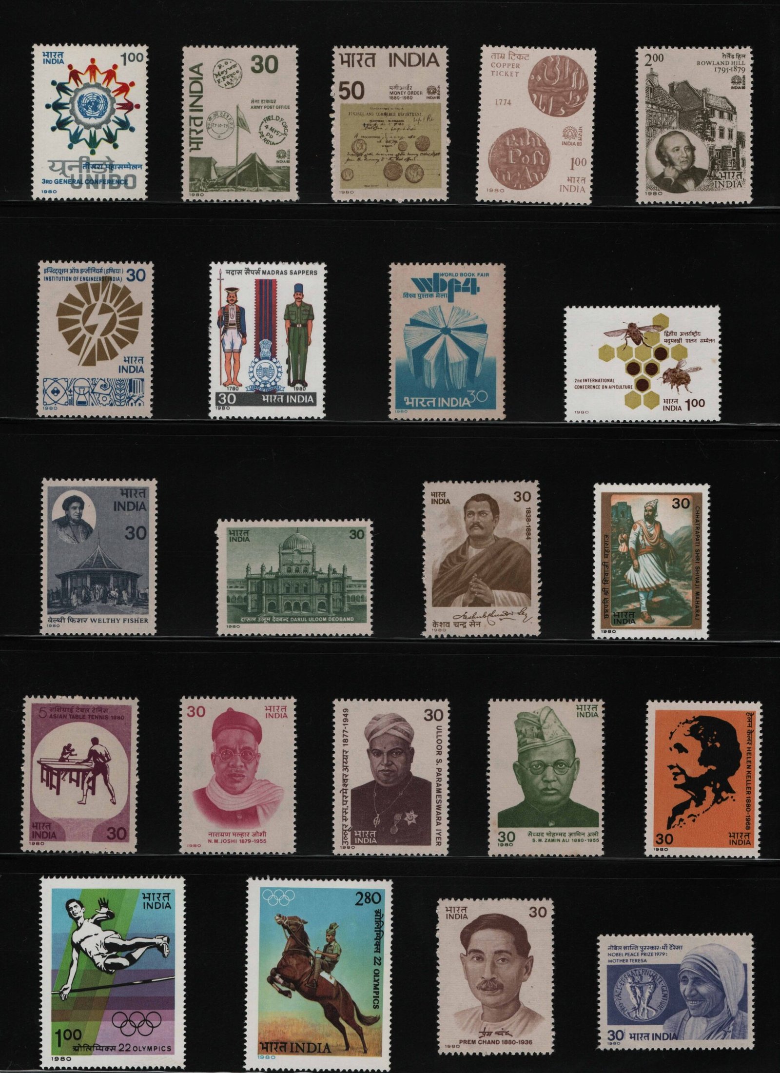 Indian MNH Commemorative Year Pack Stamps of 1980 ( 39 Stamps)