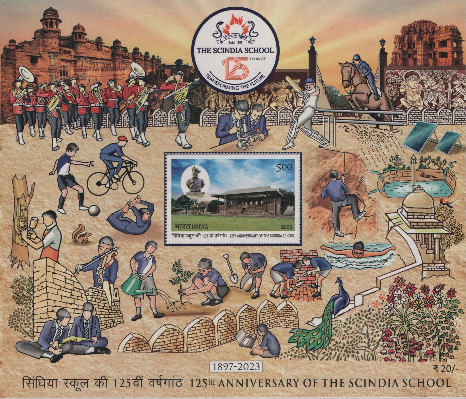 Celebrate a century and a quarter of educational excellence with The Scindia School 125th Anniversary Commemorative Philatelic Sheet. This exquisite collector’s item, released by India Post, pays homage to the illustrious legacy of one of India’s most renowned educational institutions, The Scindia School, established in 1897. Marking its 125th year in 2023, this sheet is a vibrant tribute to its motto, “सा विद्या या विमुक्तये” (That is knowledge which liberates), and its enduring commitment to “Transforming The Future”.